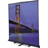 Got to blog to stay sane.... The pictures below are of a 10ft wide projection screen that is very simple and easy to set-up. Although it can sit directly on the floor, we always place this on a venue provided 6ft skirted table. This set-up looks professional and can save hundreds off the rental and set-up over a Fastfold screen. The fastfold screen, which we also carry, has to be built and is much more expensive. Not sure if you know the fastfold screen, but it is the type that has black drape all around it. The fastfold screen can also be built with a rear screen surface that allows the projector to be placed behind it. The rental price is $125.